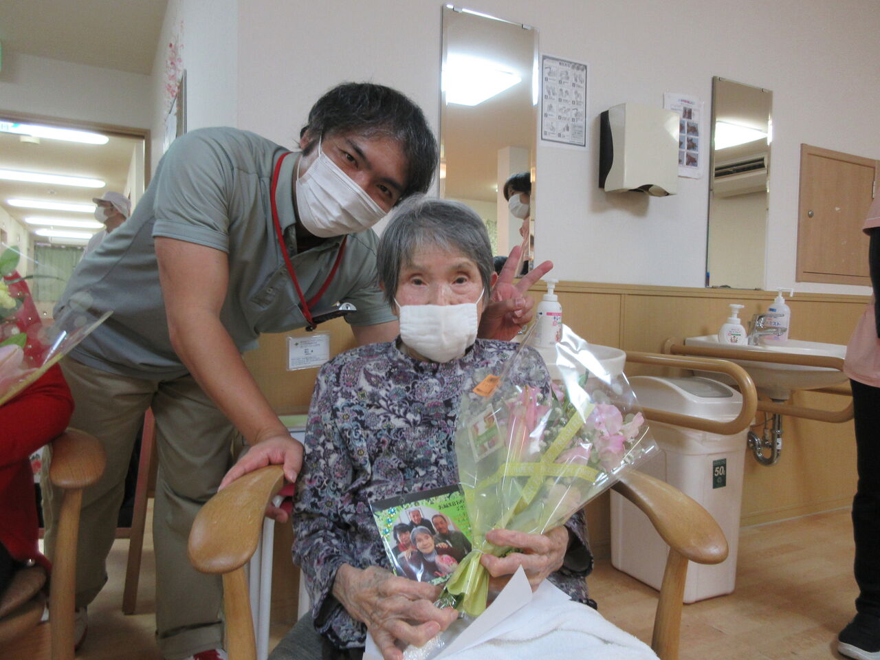 家族様と写真を撮らせて頂き、カードにしお花と一緒に