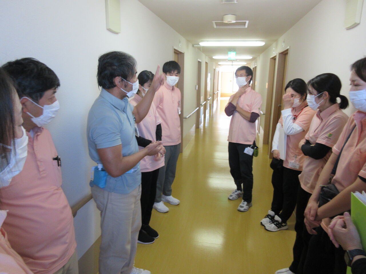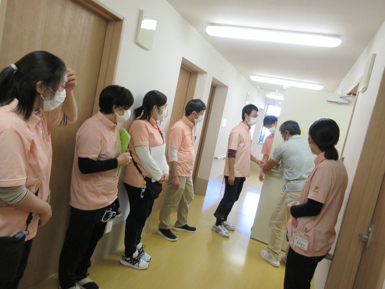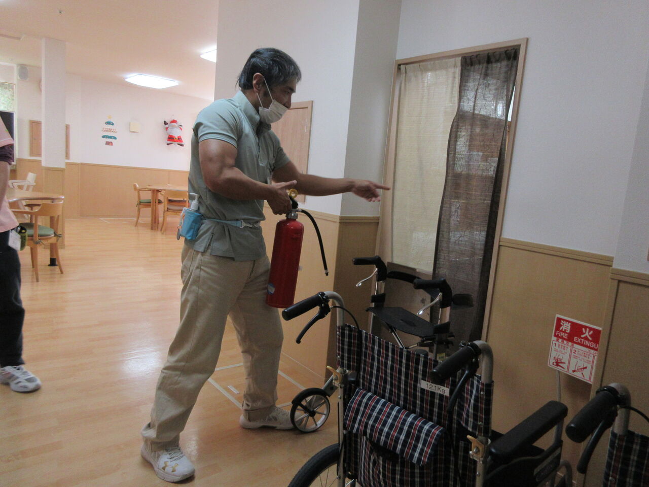 2023年11月23日 消防訓練 こんにちは。先日、消防訓練をおこないました。厨房からの火事発生を想定し、横山施設長の実演のもと訓練しました。火事発生 ⇒ 通報 ⇒ 消火 ⇒ 誘導 ⇒ 点呼・救護水害発生 ⇒ 通報 ⇒ 3Fへ誘導 ⇒ 待機実際に火災や自然災害が起きた時に落ち着いて正しい行動がとれますよう定期的に訓練をおこなっています。利用者様の安全を第一に、今後もより良い介護が提供できますよう努めてまいります。。スタッフ一同